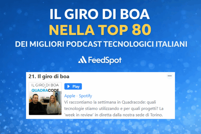 Siamo molto felici di questo risultato, che ci dà naturalmente la carica per proseguire il nostro magazine settimanale in cui vi raccontiamo le tecnologie che trattiamo ogni giorno a Quadracode e le ultime novità del mondo tech.